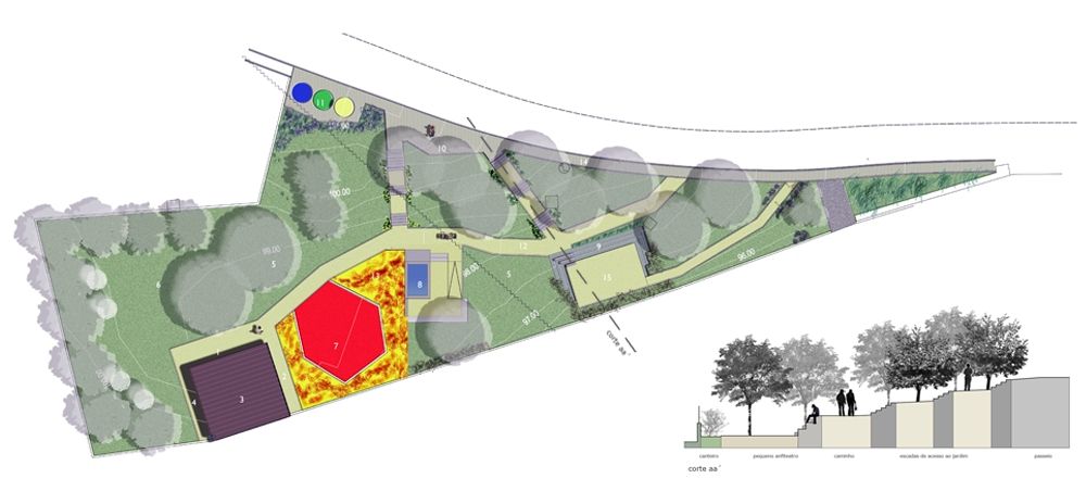 Foi criado assim um bonito jardim, mas que é mais do que uma simples área verde. No espaço de 2300m2, existe um lavadouro público, casas de banho, um parque infantil, uma fonte, um churrasco, um pequeno anfiteatro, um ecoponto, muitos bancos de jardim, relva e árvores.